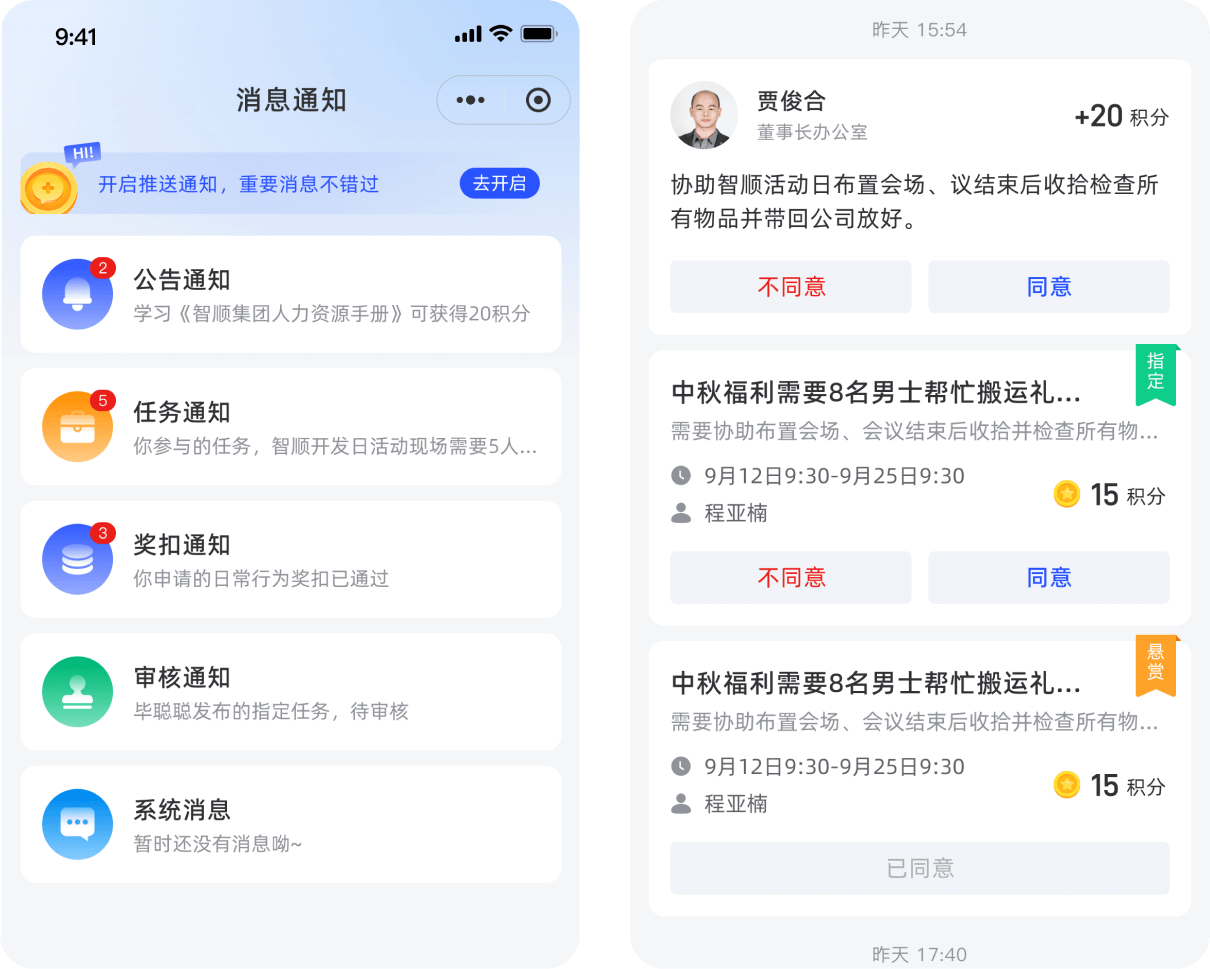 通過消息通知,平臺(tái)可以及時(shí)向員工發(fā)送重要信息并促進(jìn)員工參與和互動(dòng)。